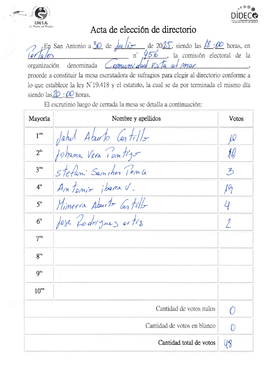 Acta Comunidad vista al mar