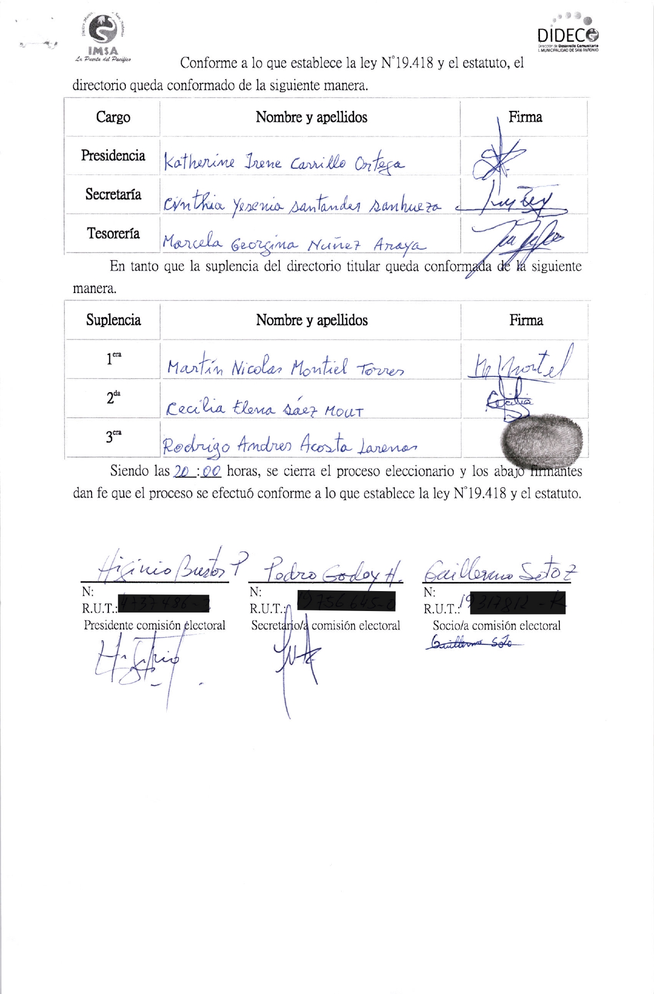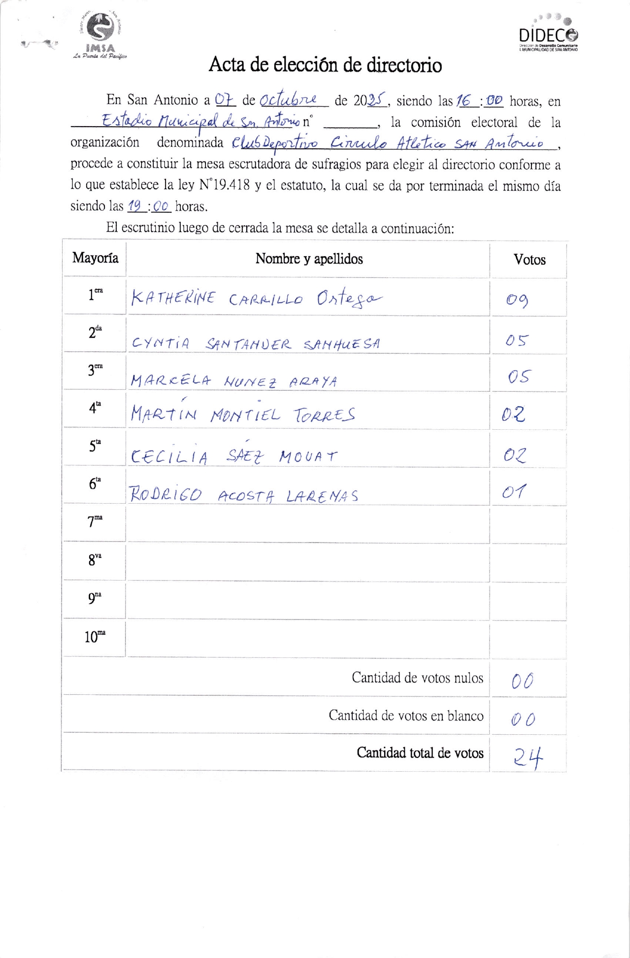 Acta de elecciones CIRCULO ATLETICO