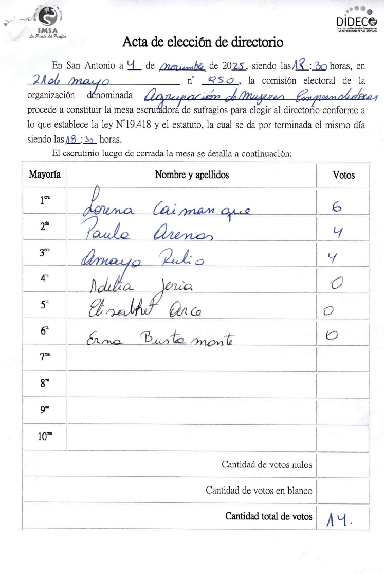 Acta Agrupación de mujeres emprendedoras