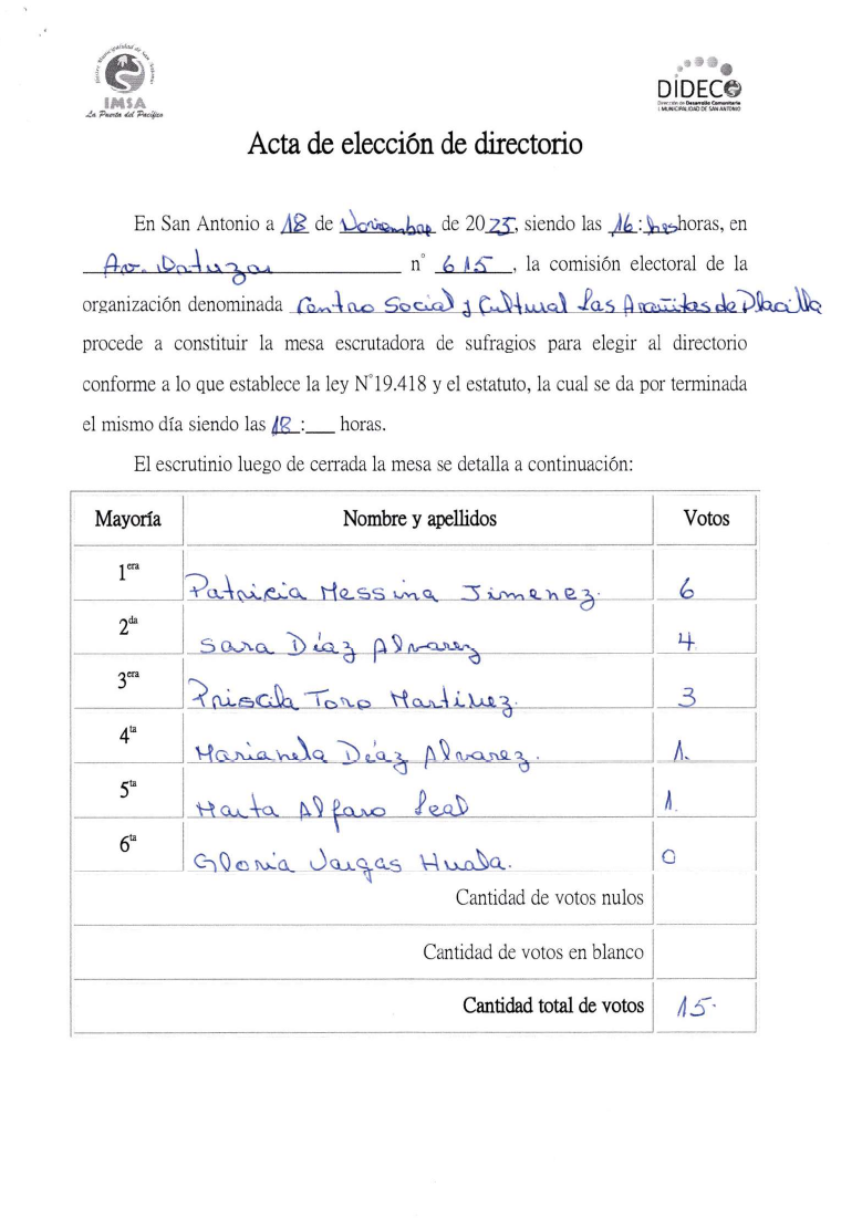 Acta centro social y cultural nlas arañitas de placilla