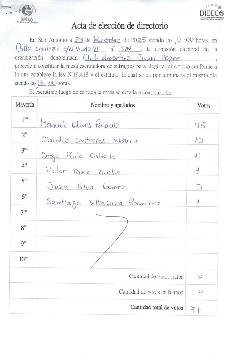 Acta club deportivo Juan Aspee