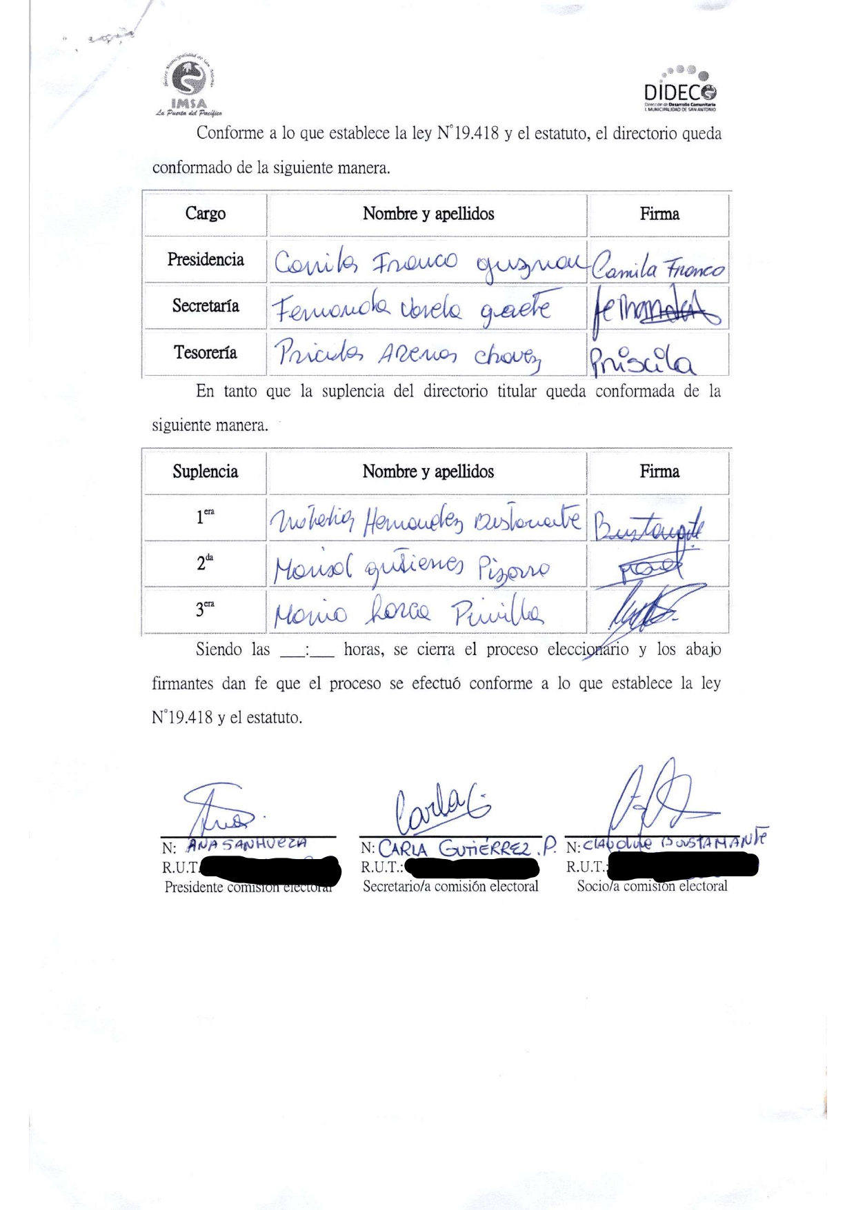 ACTA ELECCION DIRECTIVA AGRUPACION INCLUSIVA PASEO BELLAMAR