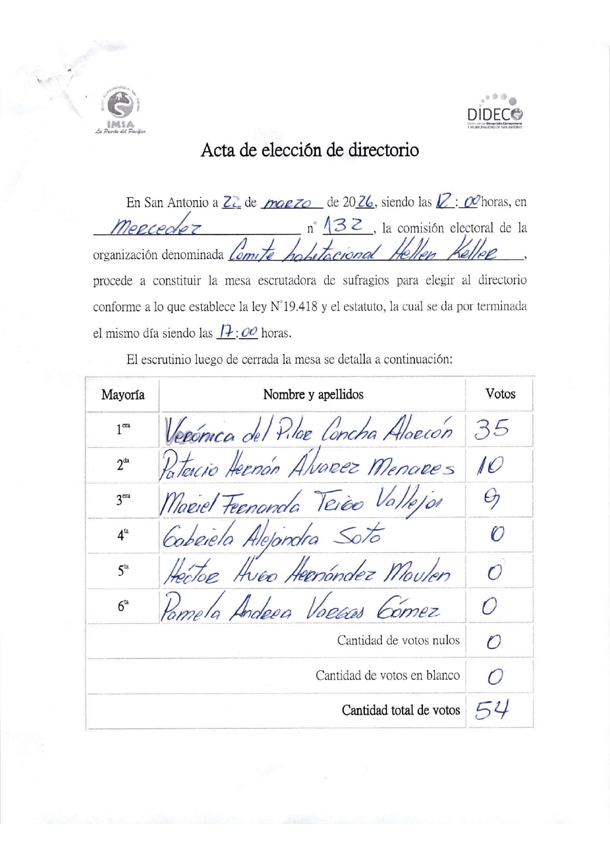 ACTA COMITE HABITACIONAL HELLEN KELLER